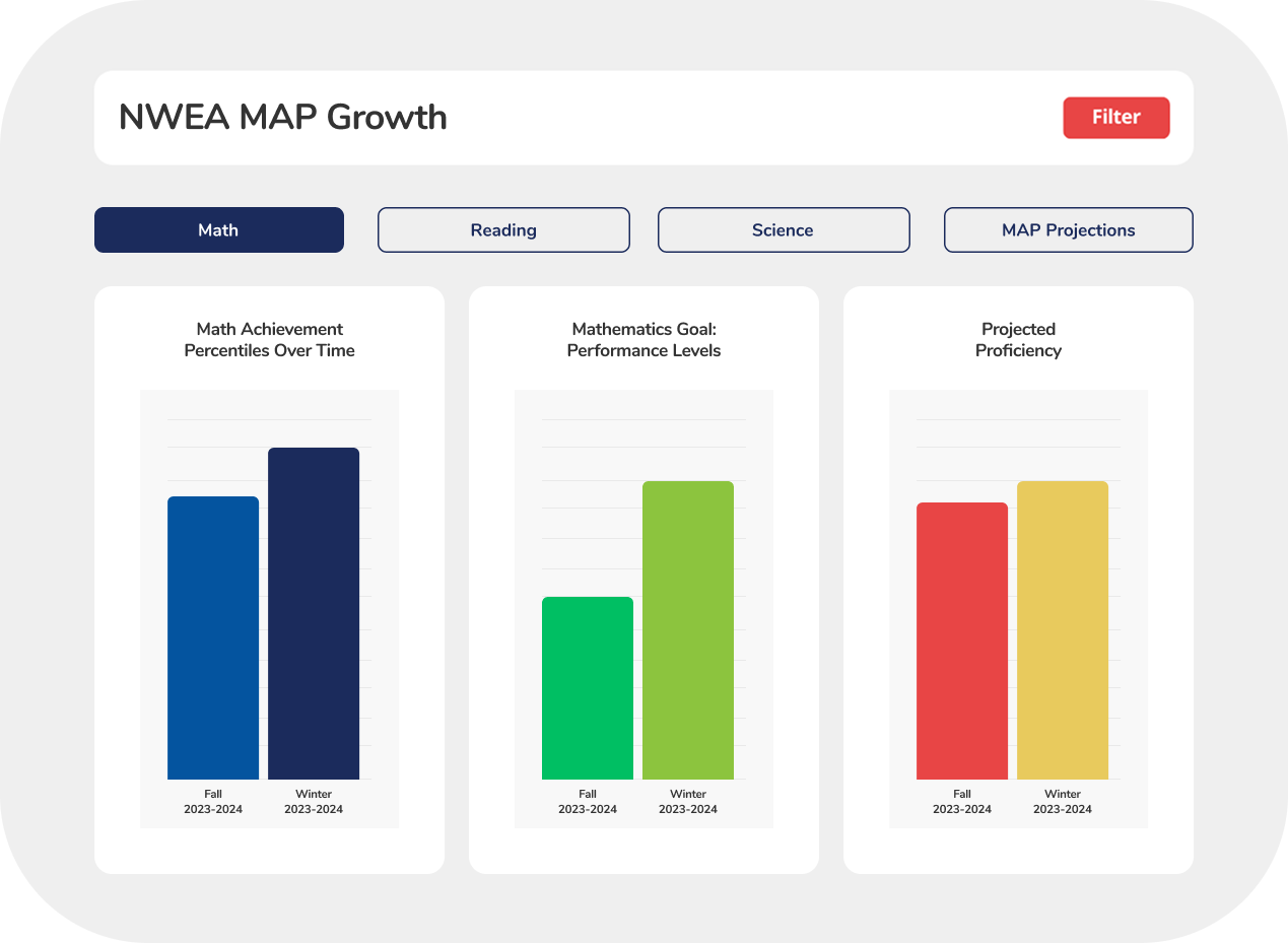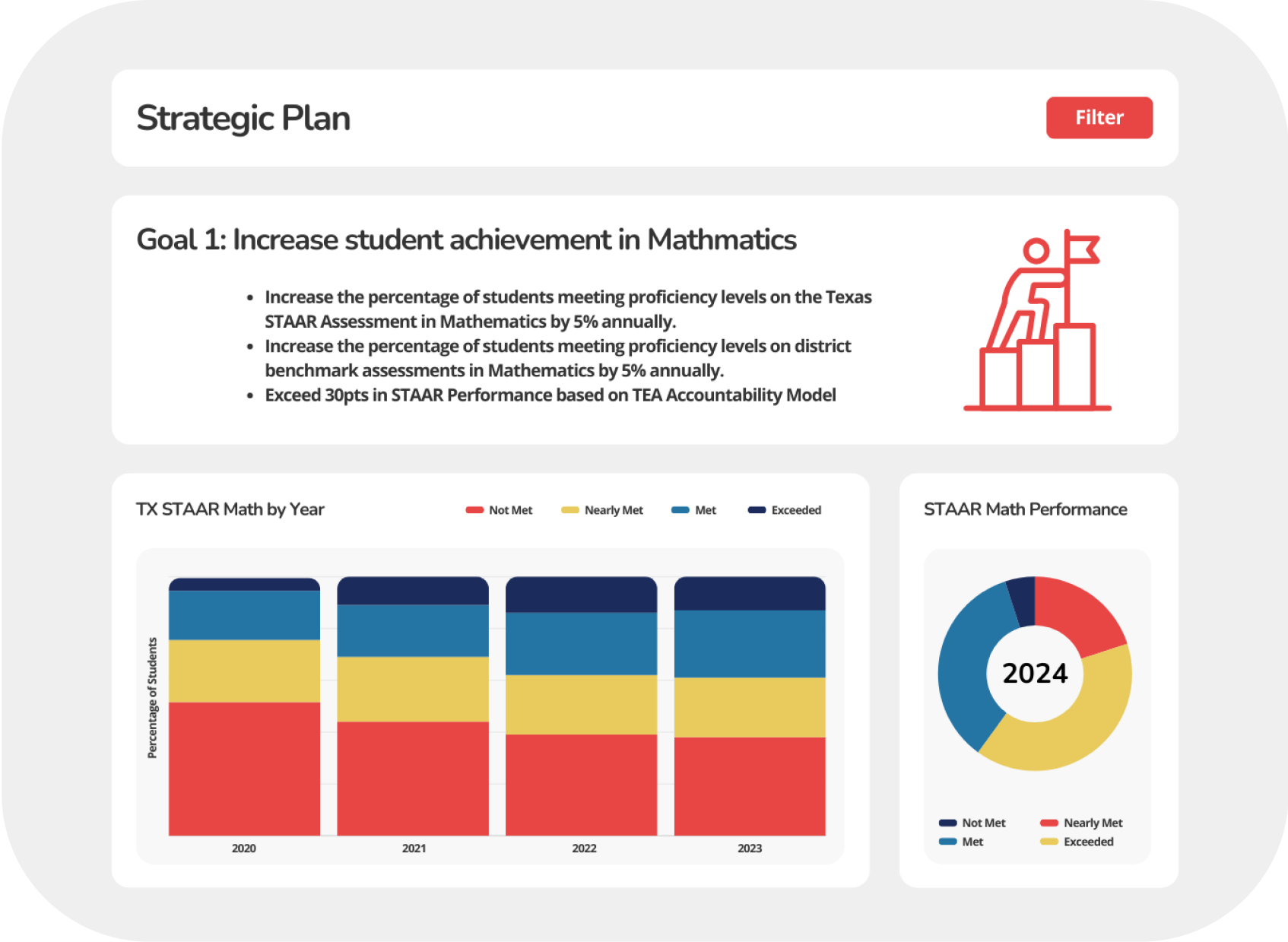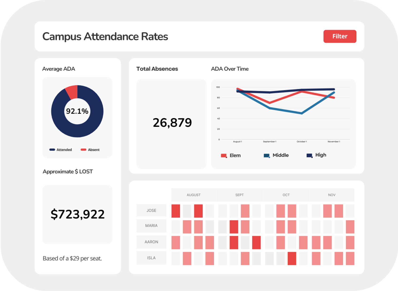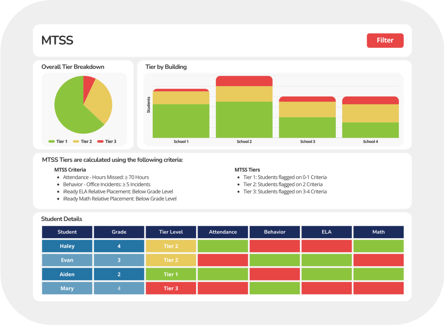 With real-time data flowing from each system into one platform, each stakeholder can work together towards your district’s goals.